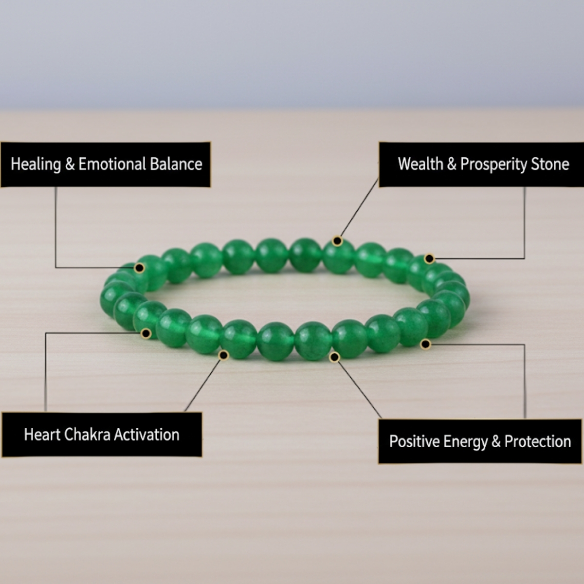 The Green Aventurine Bracelet is considered a magnet for luck, wealth, and growth. It not only attracts financial success but also balances emotions, encourages kindness, and boosts positivity. Known as a crystal of renewal, it inspires hope and confidence.