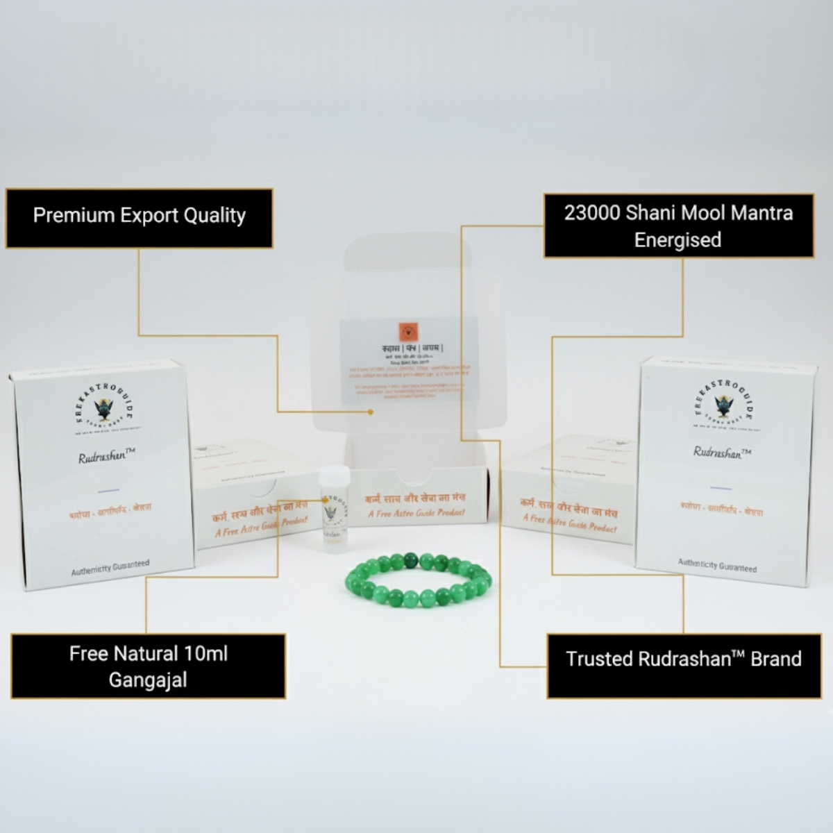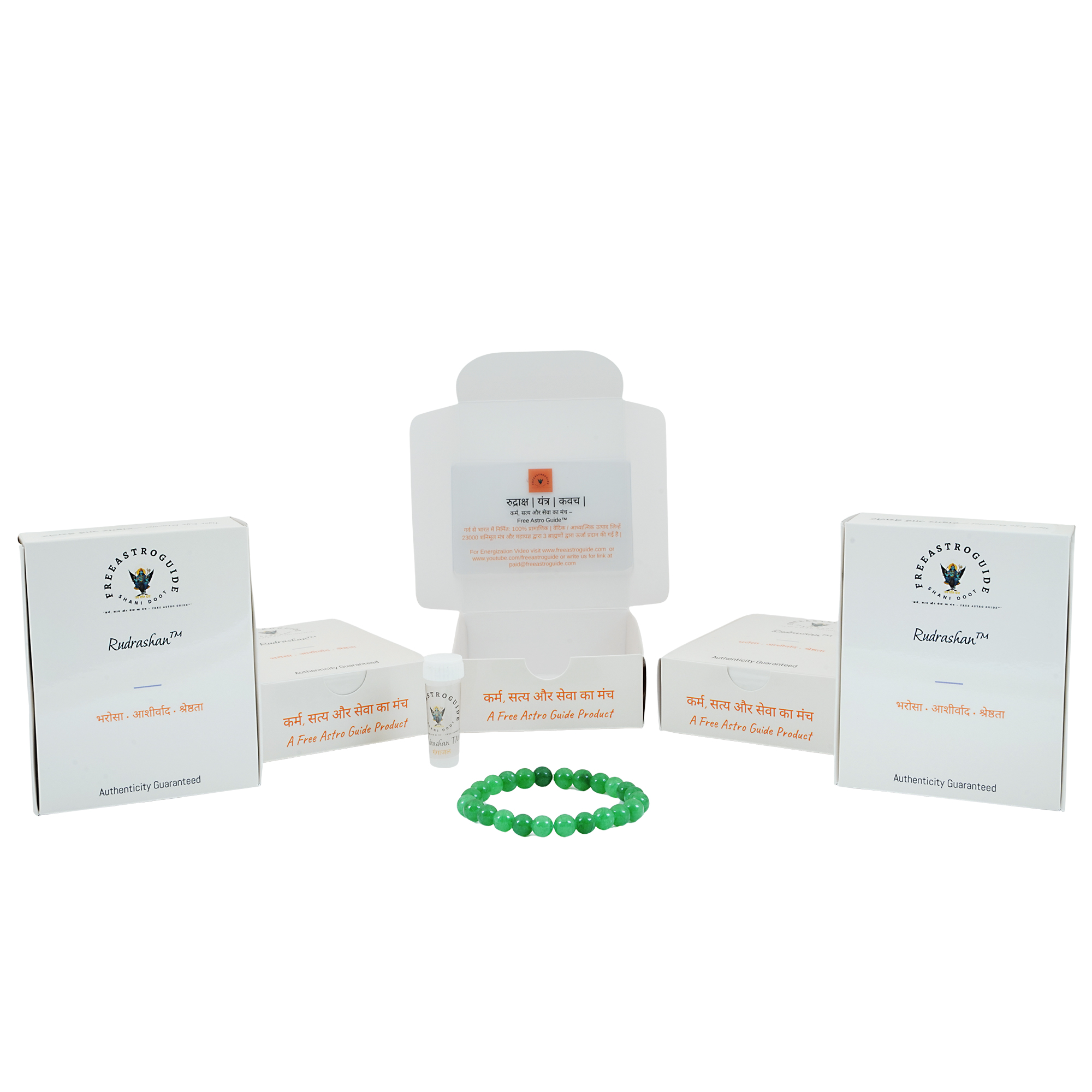 Offered under the trusted FreeAstroGuide™ (ISO 9001:2015 Certified Company) with the exclusive product line Rudrashan™ (Trademark), this bracelet ensures authenticity, purity, and sacred Vedic energisation.
