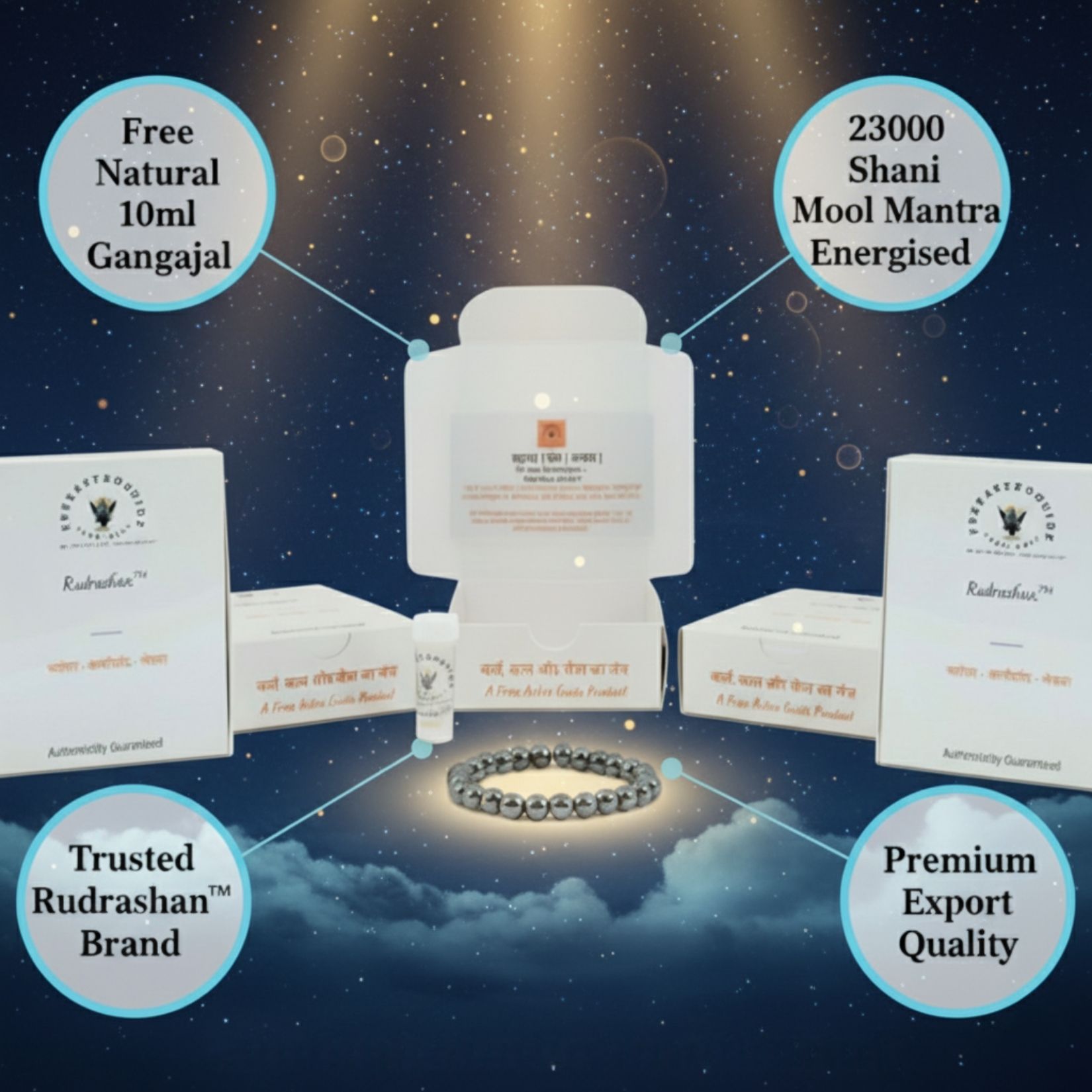Offered under the trusted FreeAstroGuide™ (ISO 9001:2015 Certified Company) with the exclusive spiritual product line Rudrashan™ (Trademark), this bracelet ensures authenticity, purity, and Vedic energisation.